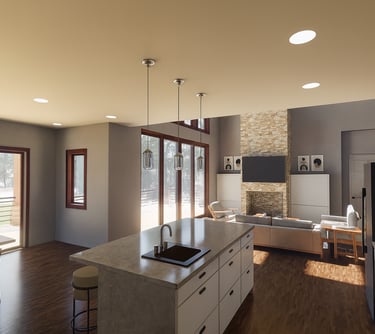 The Lookout on Poplar is a 2-bedroom, 2-bath mountain retreat tucked just off the Blue Ridge Parkway on Poplar Drive. With dark siding, natural wood finishes, and a large screened porch with a hot tub, this 1,500-square-foot home is designed for peaceful getaways and long-range views. The open-concept layout maximizes light and flow, while the compact footprint and efficient design offer comfort without compromise.