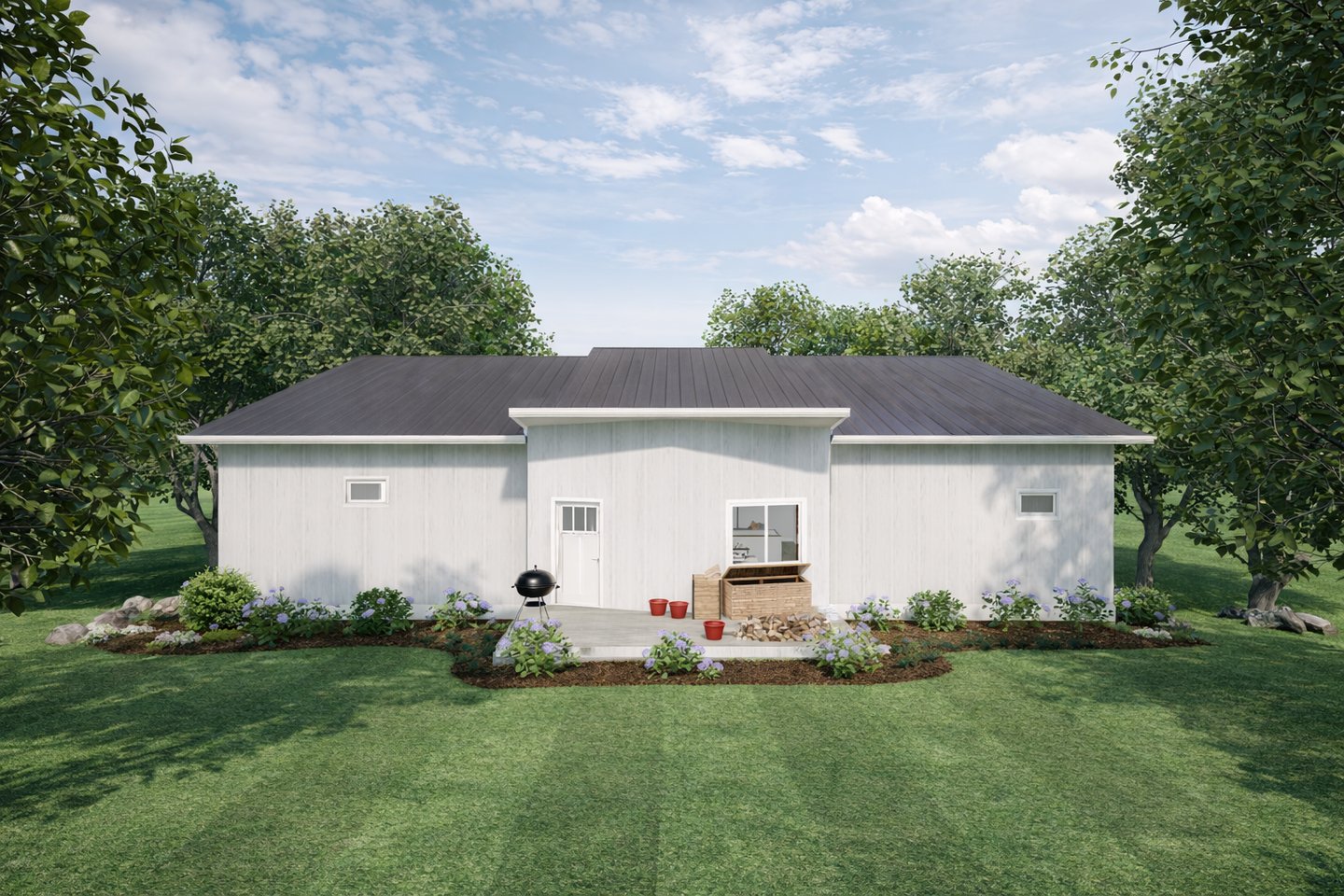 Covered deck and patio with direct access from bedrooms and living spaces.