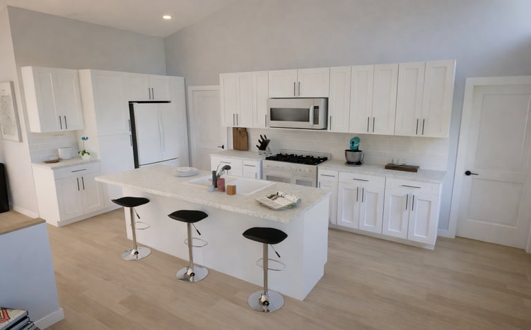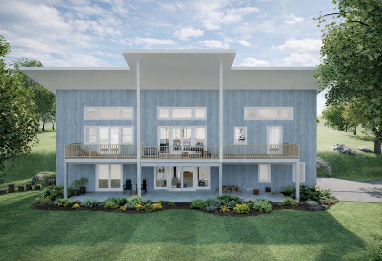 This two-story residence designed with flexible living across both levels. The main floor includes a private primary suite with a full bath and closet, along with an additional bedroom and nearby full bathroom. The kitchen, dining, and living areas connect in an open layout, and a covered deck extends the living space outdoors with direct access from the primary suite, secondary bedroom, and main living area.