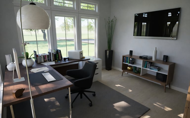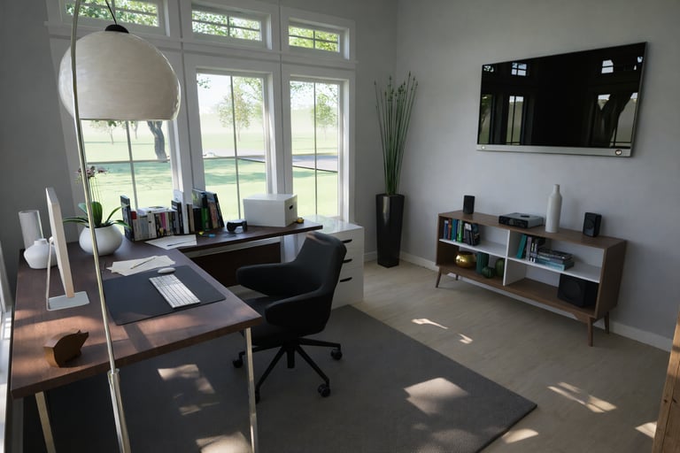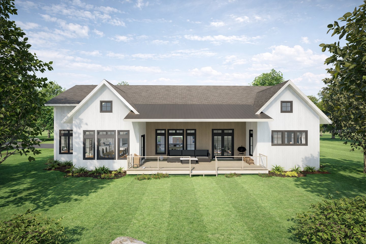 Behind the kitchen, a functional area includes a pantry, office, and mudroom with access to the outdoors and attached garage. The garage connects through the mudroom and includes an upper-level storage space accessed from inside the home. Covered front and back outdoor areas extend the living space and create comfortable places to gather year-round.