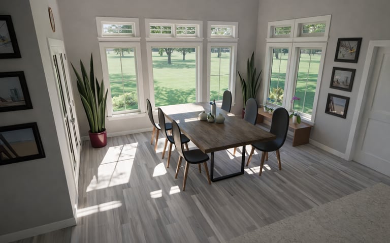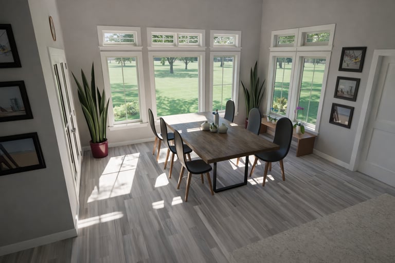 The entry opens into a connected living, kitchen, and dining space at the heart of the home.