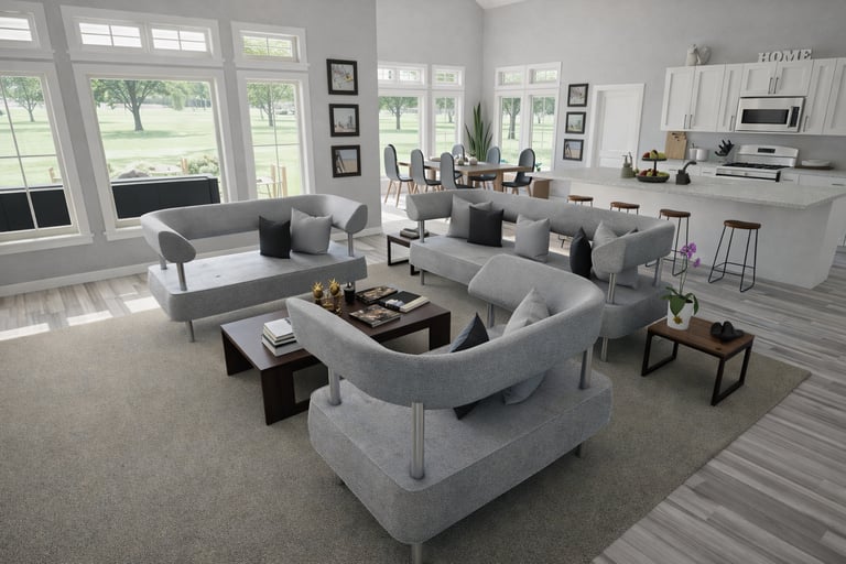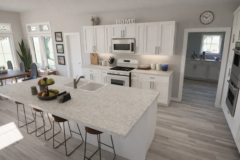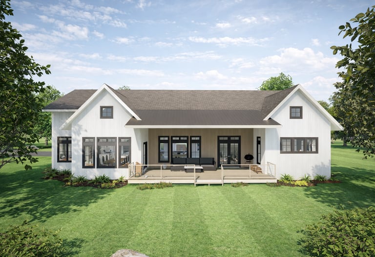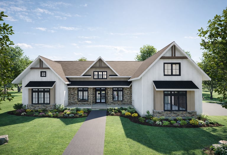 This one-story residence is designed with a clear split layout, placing all bedrooms on one side and the main living spaces on the other. The primary suite includes a full bath and walk-in closet with direct access to the laundry area. Two additional bedrooms are located nearby with access to a full bathroom. At the center of the home, a spacious entry leads into an open living, kitchen, and dining area that flow together for everyday living.